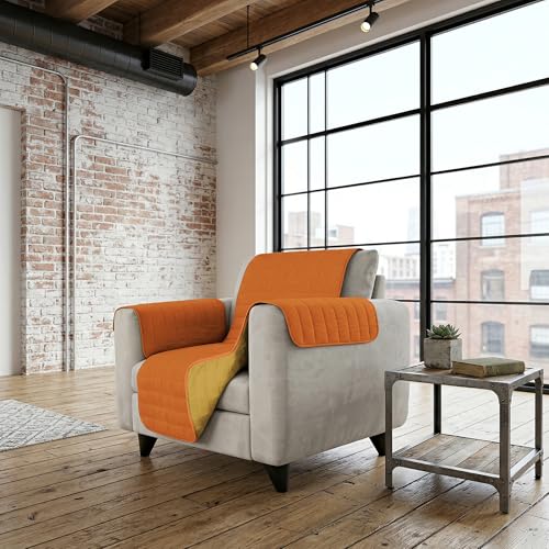 Housse de canapé Bicolore en Microfibre Trendy, Orange/Jaune, 1 Place