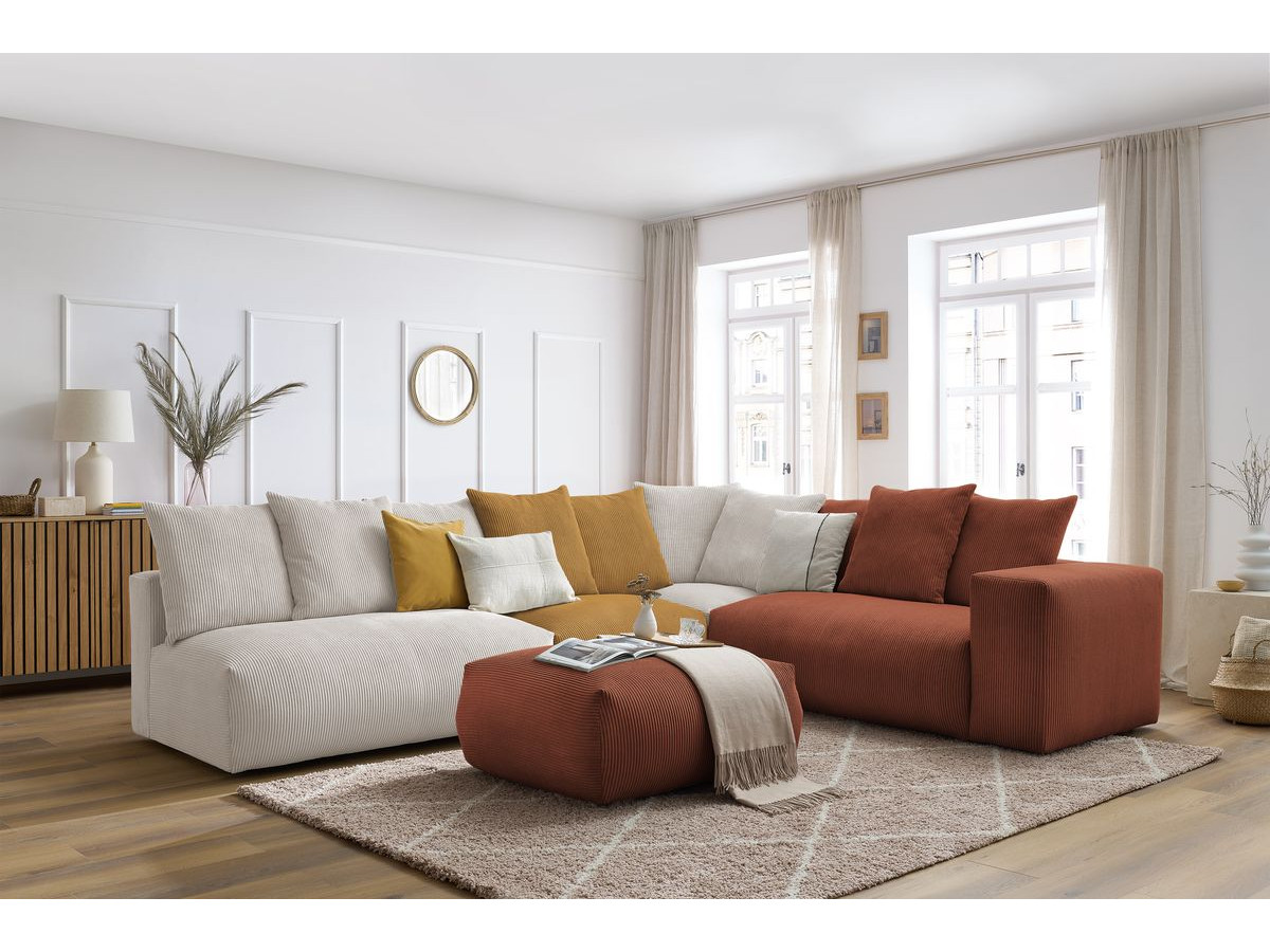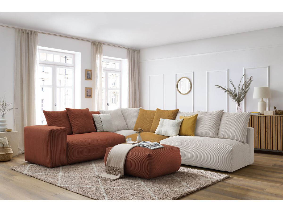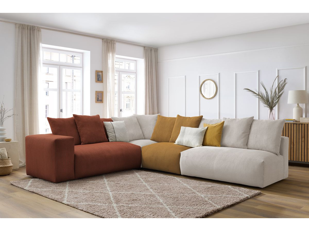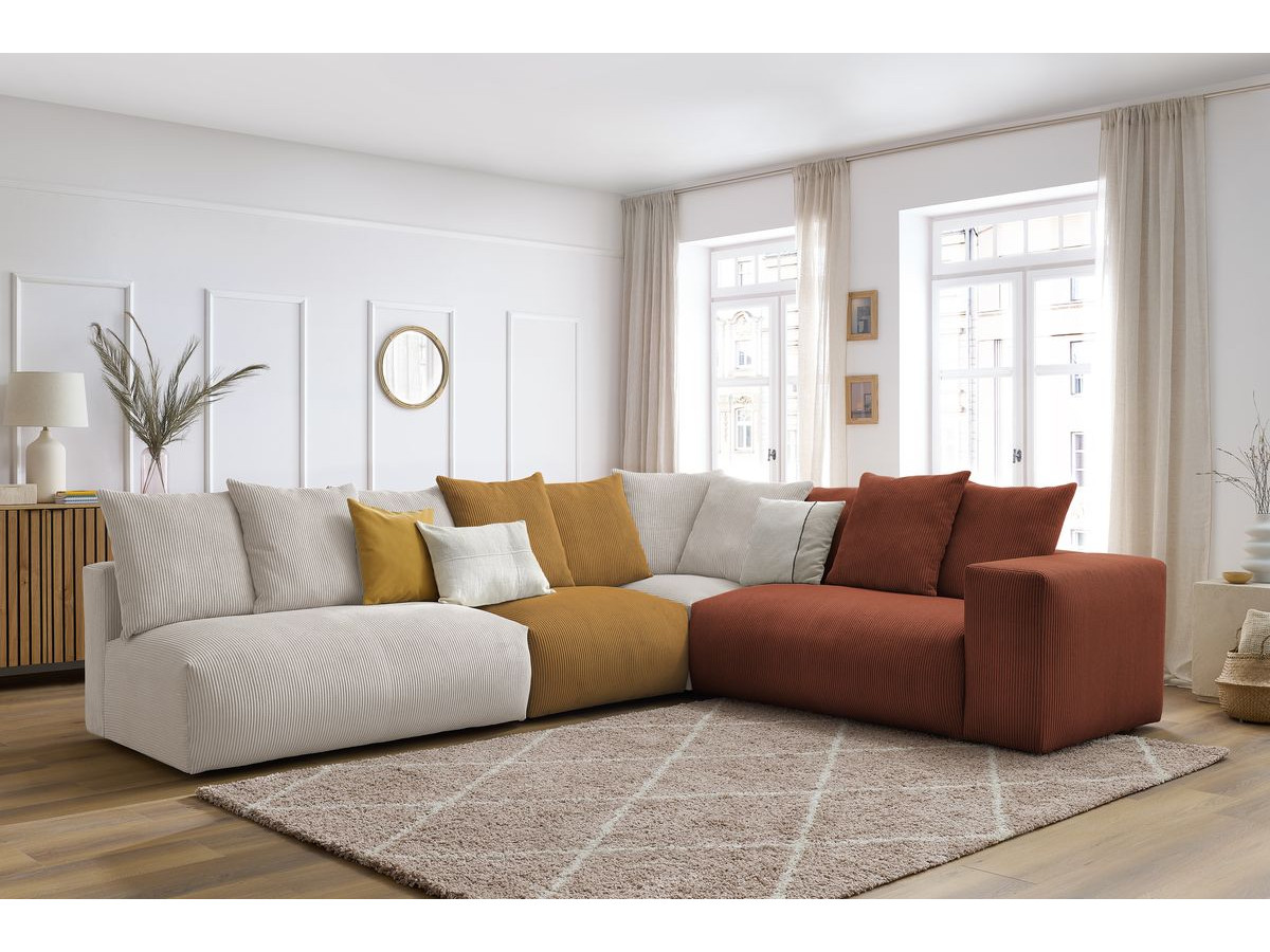 Bobochic canapé d'angle fixe 100% modulable nihad tissu velours côtelé 2 chauffeuses, 1 pouf et 2 méridiennes multicolore NIHAD