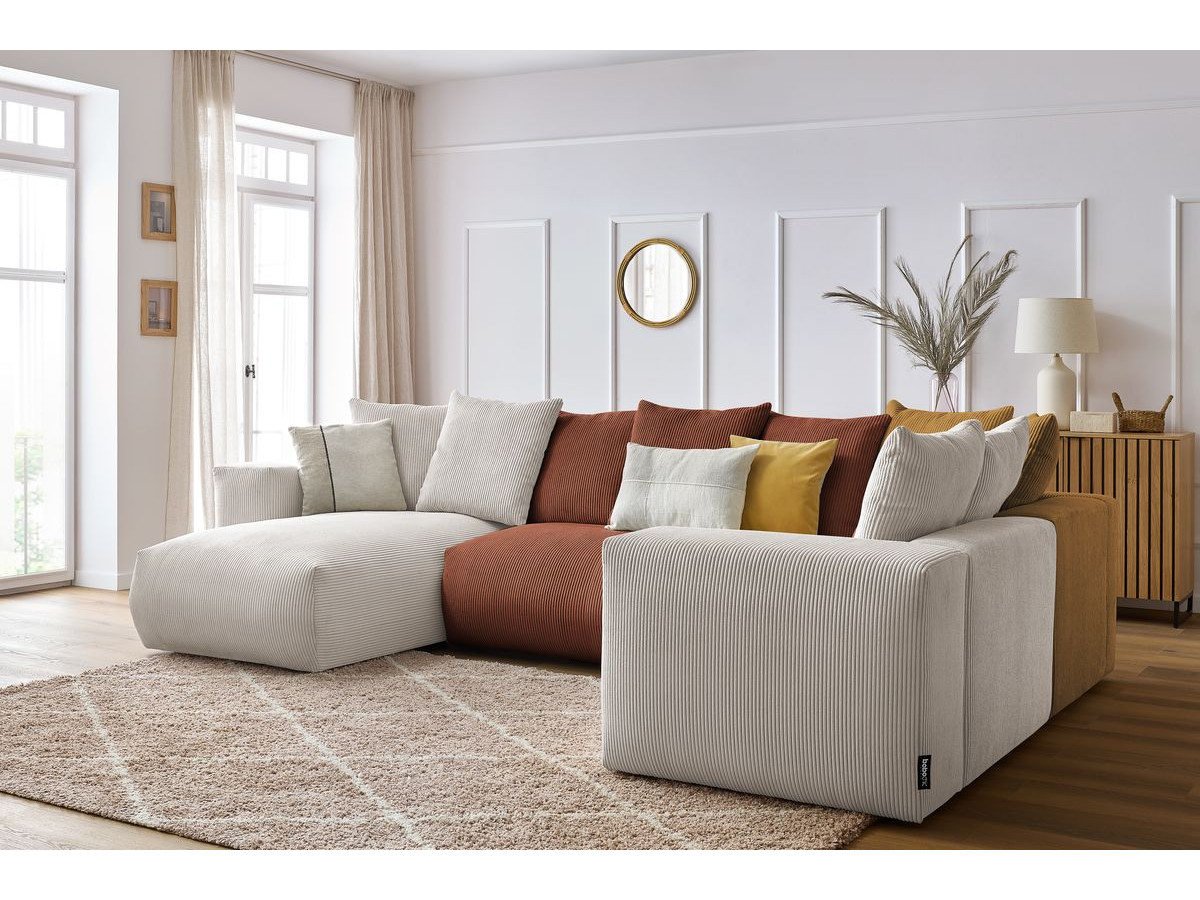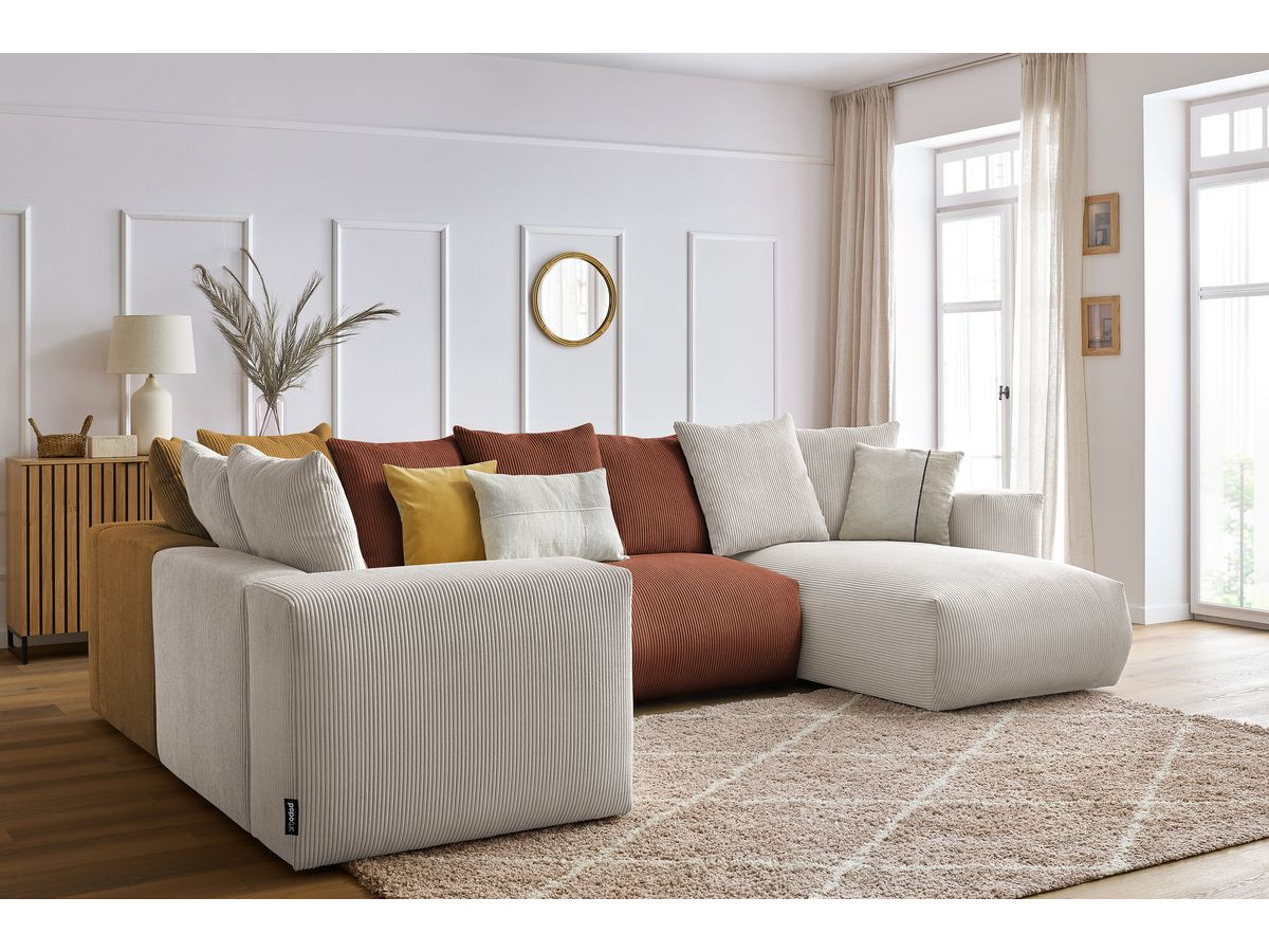 Bobochic canapé panoramique fixe 100% modulable nihad tissu velours côtelé 3 chauffeuses, 1 angle, 1 méridienne et 2 poufs multicolore panoramique NIHAD