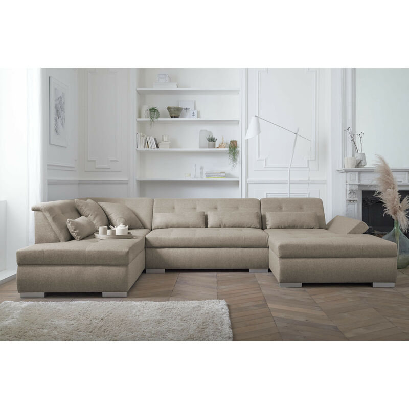 Canapé panoramique convertible - 4 places - MARCEL - Tissu Beige - 2 coffres - 265 x 140 x 87 cm
