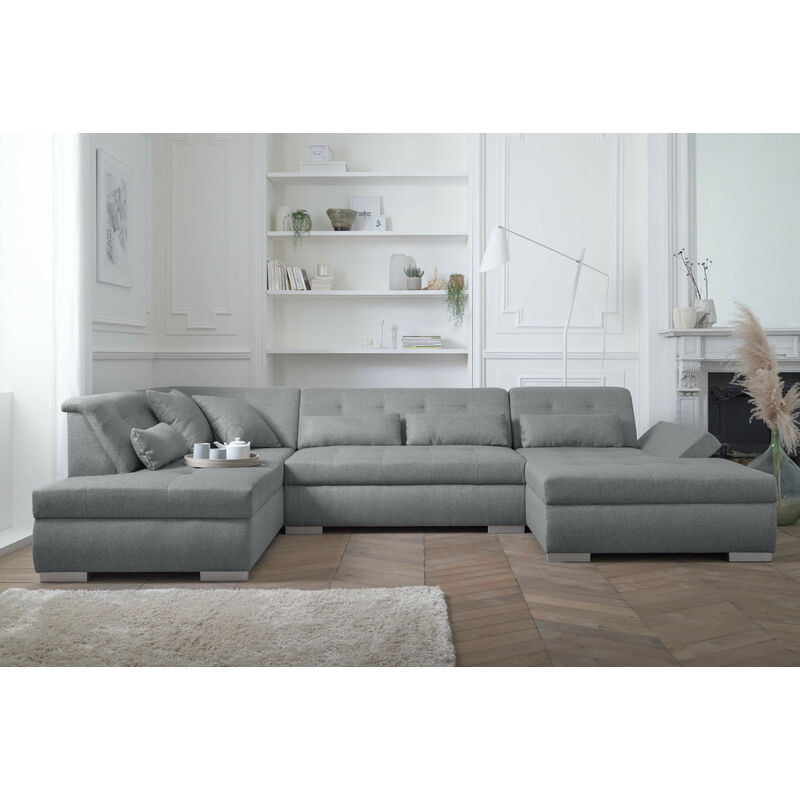 Bestmobilier Bella canapé d'angle panoramique XXL en U convertible avec coffre gauche