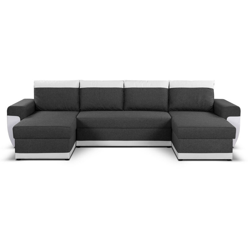 Canapé panoramique convertible - 4 places - MARCEL - Tissu Gris anthracite - 2 coffres - 265 x 140 x 87 cm