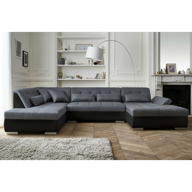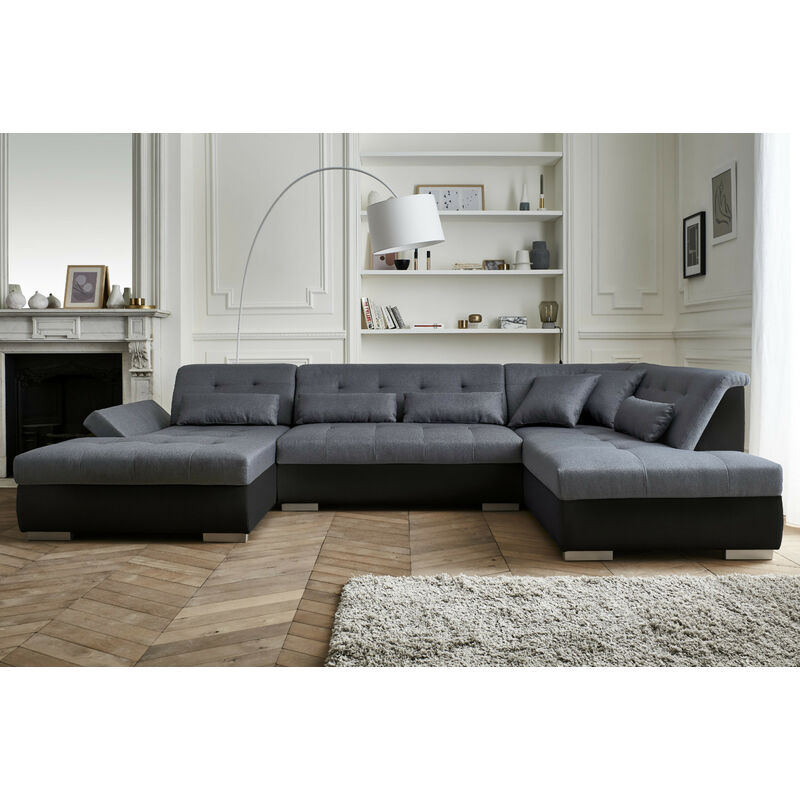 Otia - Canapé D'angle Panoramique Et Convertible Xxl En u - En Simili Et Tissu - Angle Droit gris