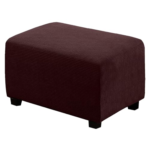 BXFUL Housse Ottoman Housse de Protection pour Repose-Pieds rectangulaire Housse de Pouf Extensible Housse de Ottoman canape Pouf rectangulaire (Large,Vin Rouge)