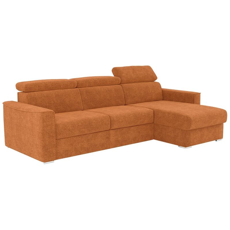 Canapé d'angle réversible convertible express en tissu chenille terracotta - Couchage 160 cm - Matelas 22 cm mémoire de forme vizir