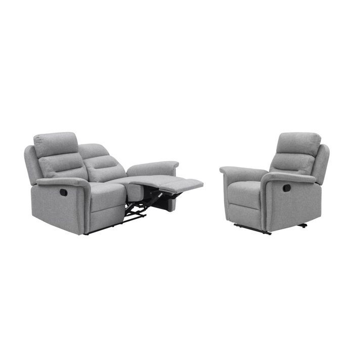 Ensemble canapé relax LÉON 2 places + fauteuil manuel en microfibre et simili Gris/Noir - LOUNGITUDE