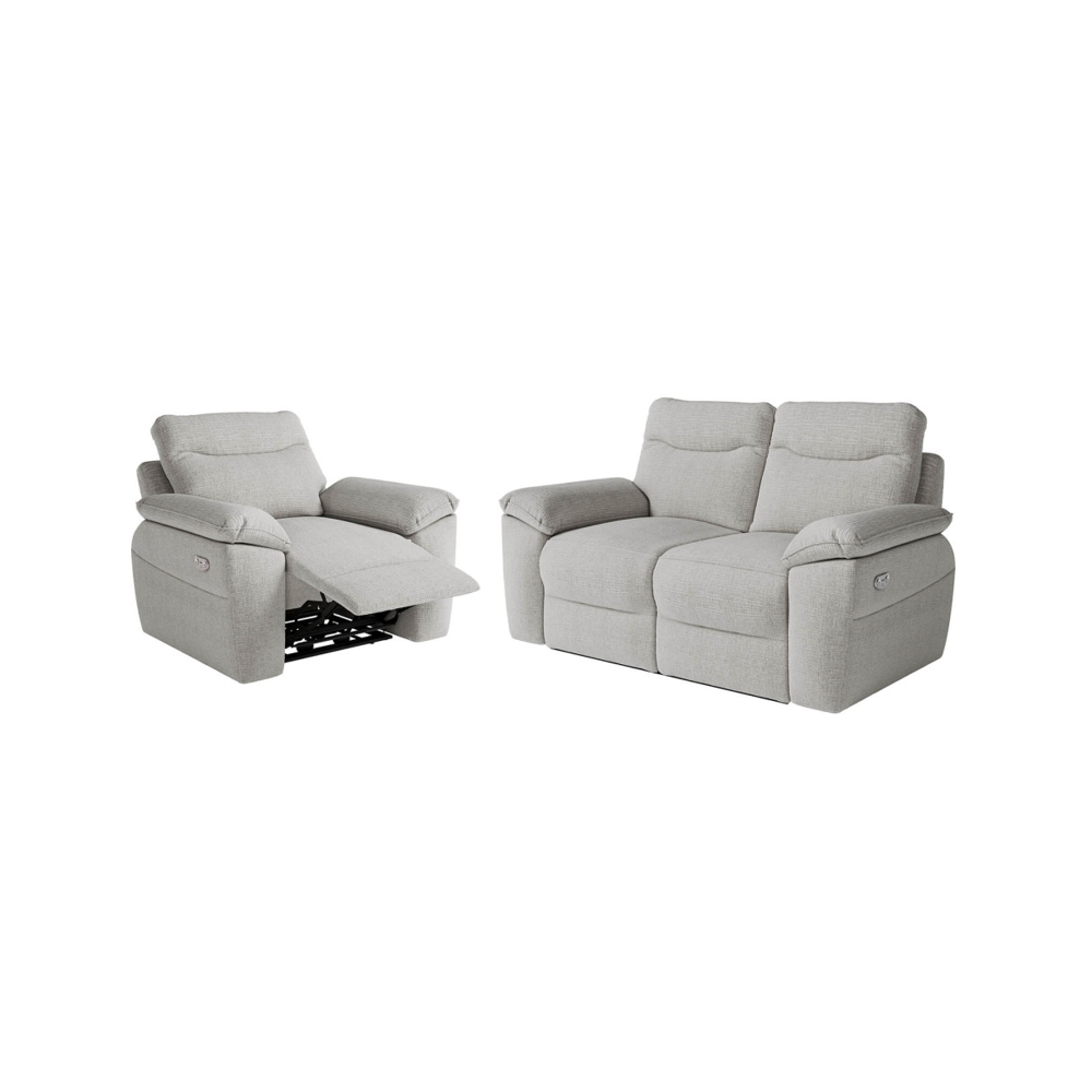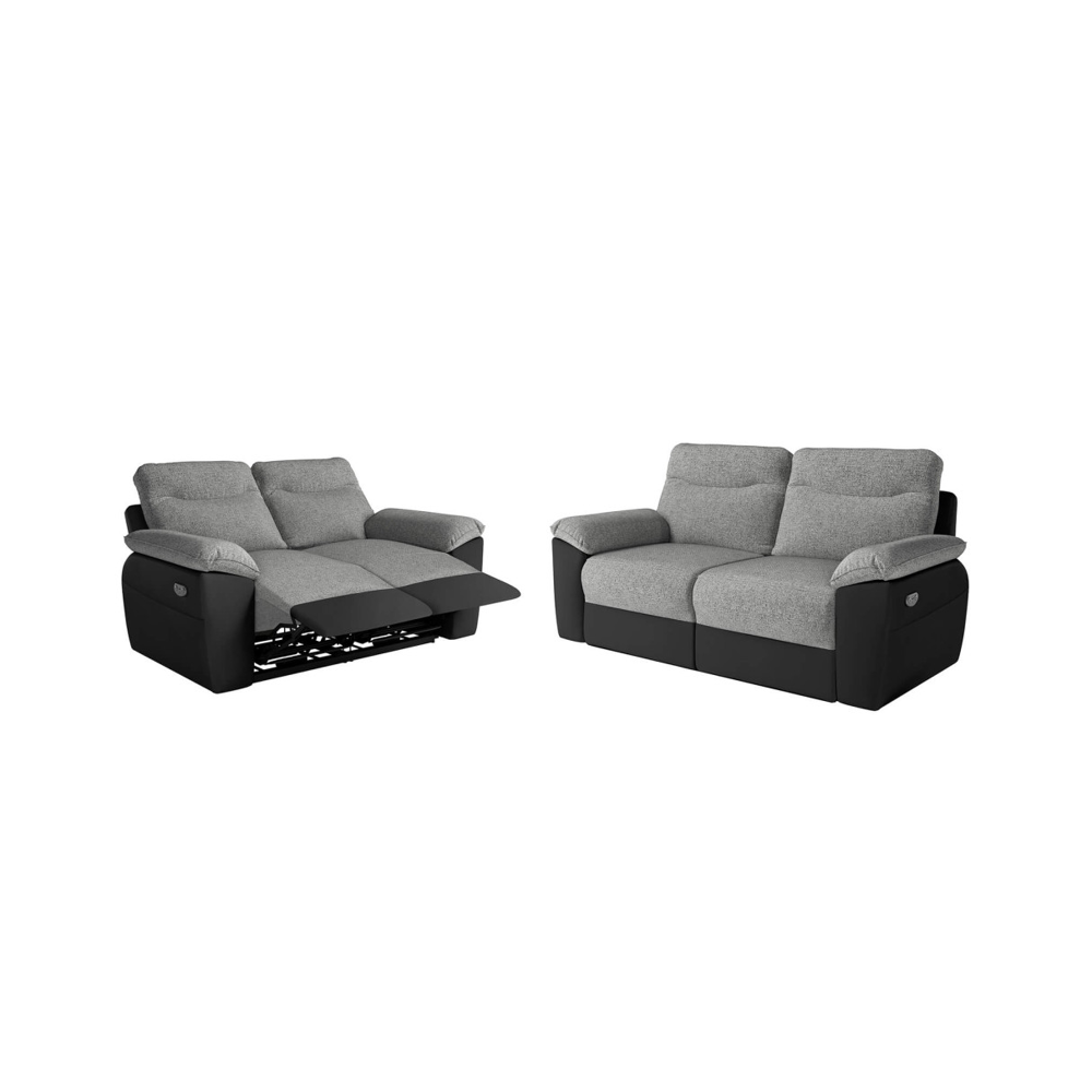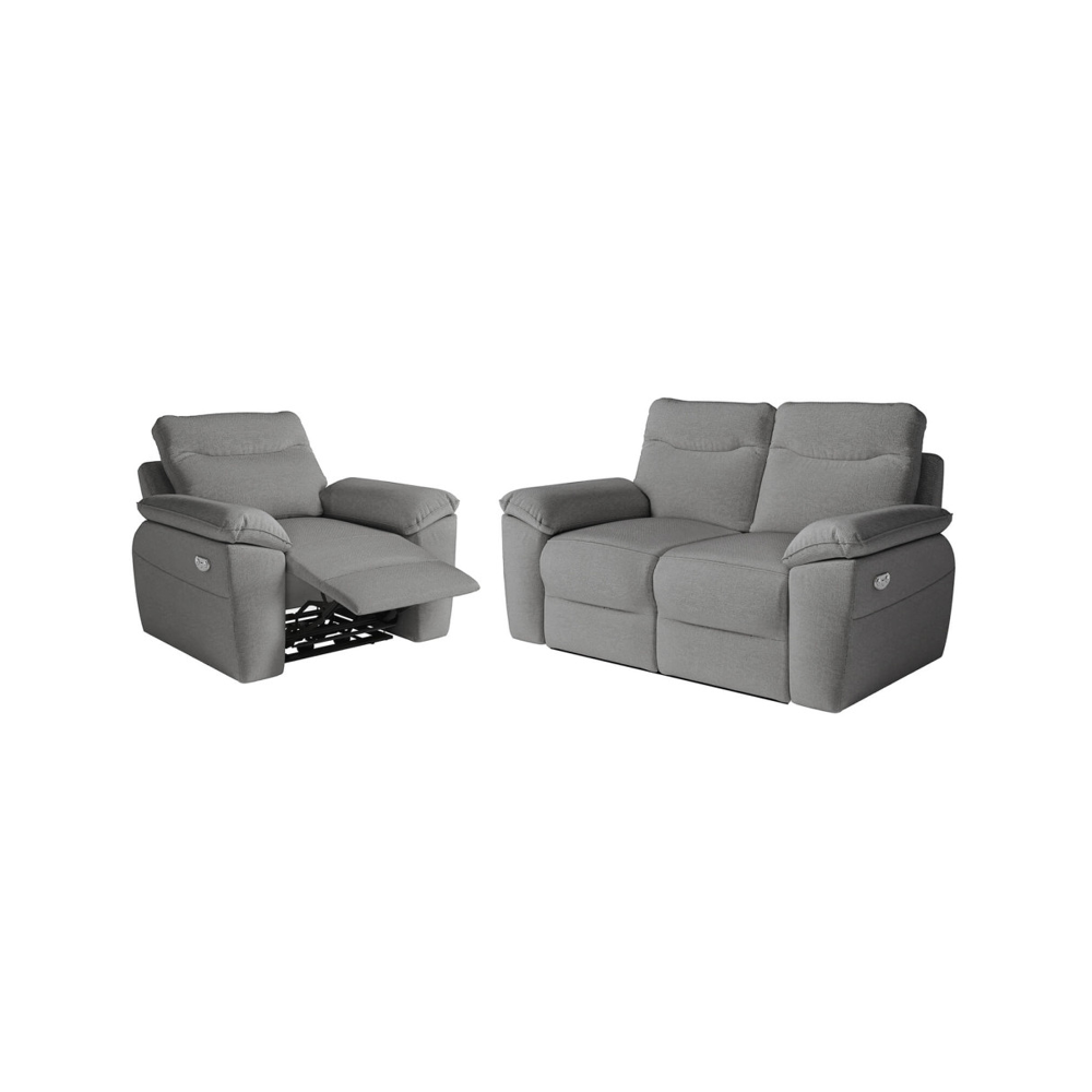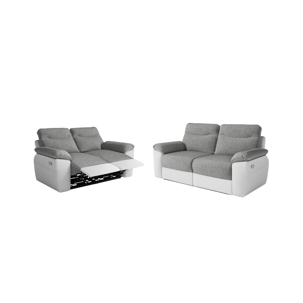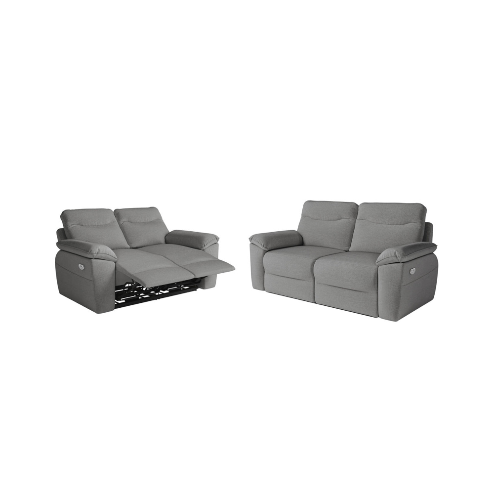 Canapé de relaxation électrique 2 places en tissu BONA - Gris clair - L154 x 90 x 100cm - LOUNGITUDE