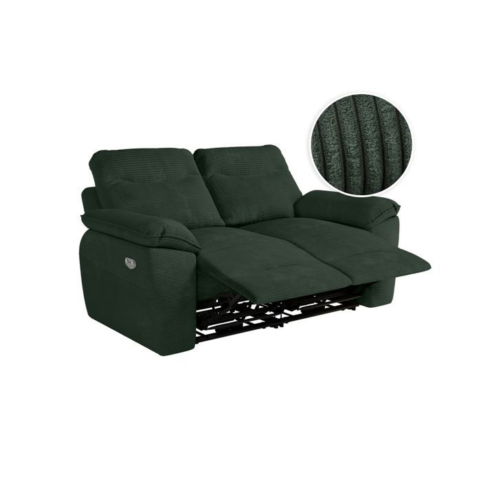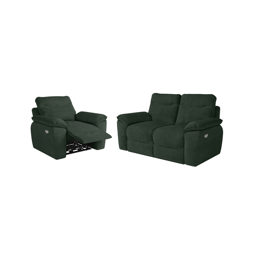 Pack - canapé de relaxation ross électrique 2 places et fauteuil en velours côtelé - vert foncé ROSS