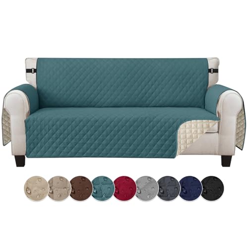 Jaotto Housse de Canapé Imperméable 3 Places Housse Canapé Reversible à l'eau Housse Canapé Anti Poils Animaux Protecteur de Canapé Universelle pour Chiens,Vert Encre