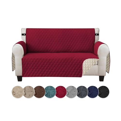 Jaotto Housse de Canapé Imperméable 2 Places Housse Canapé Reversible à l'eau Housse Canapé Anti Poils Animaux Protecteur de Canapé Universelle pour Chiens,Bordeaux