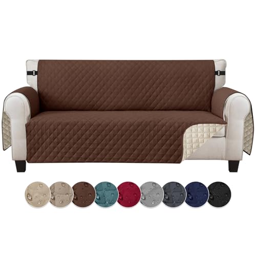 Jaotto Housse de Canapé Imperméable 4 Places Housse Canapé Reversible à l'eau Housse Canapé Anti Poils Animaux Protecteur de Canapé Universelle pour Chiens,Marron