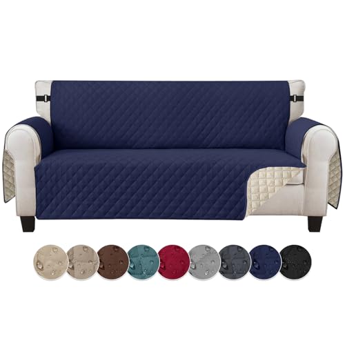 Jaotto Housse de Canapé Imperméable 3 Places Housse Canapé Reversible à l'eau Housse Canapé Anti Poils Animaux Protecteur de Canapé Universelle pour Chiens,Bleu Marine