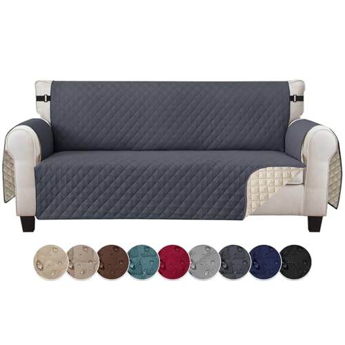 Jaotto Housse de Canapé Imperméable 3 Places Housse Canapé Reversible à l'eau Housse Canapé Anti Poils Animaux Protecteur de Canapé Universelle pour Chiens,Gris Foncé