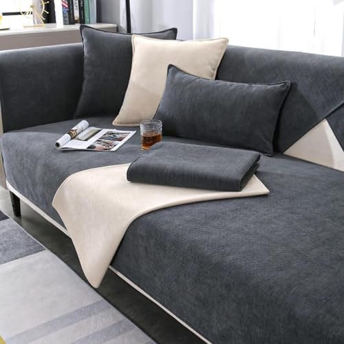 MCNDSI Housse de Canapé Antidérapante Couvre Canapé d'angle 2 3 4 Place Universelle Couverture Canape Angle avec sans Accoudoirs Chenille Protège Canapé(E,35.4x63in/90x160cm)