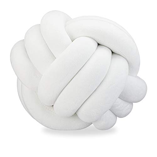 Relaxdays 10025428_49, coussin canapé noué, décoratif, scandinave, Oreiller d’ornement nœud, Ø 25 cm, blanc, polyester, mousse, 25 x 25 x 25 cm