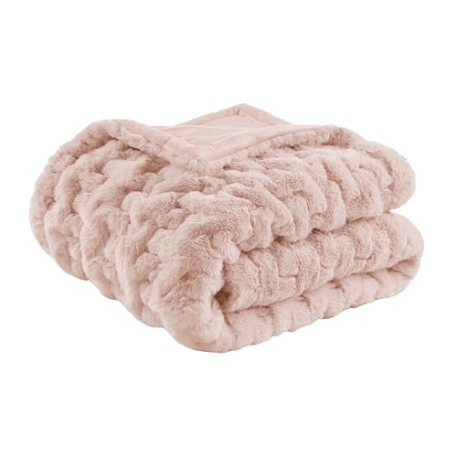 Madison Park Couvre-lit froncé de Luxe en Fausse Fourrure brossée Longue pour lit, canapé ou Sofa, 127 x 152,4 cm, Rose poudré