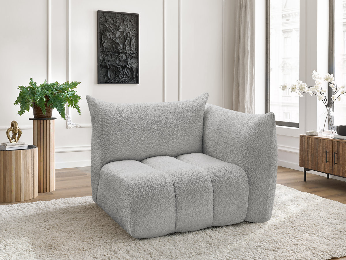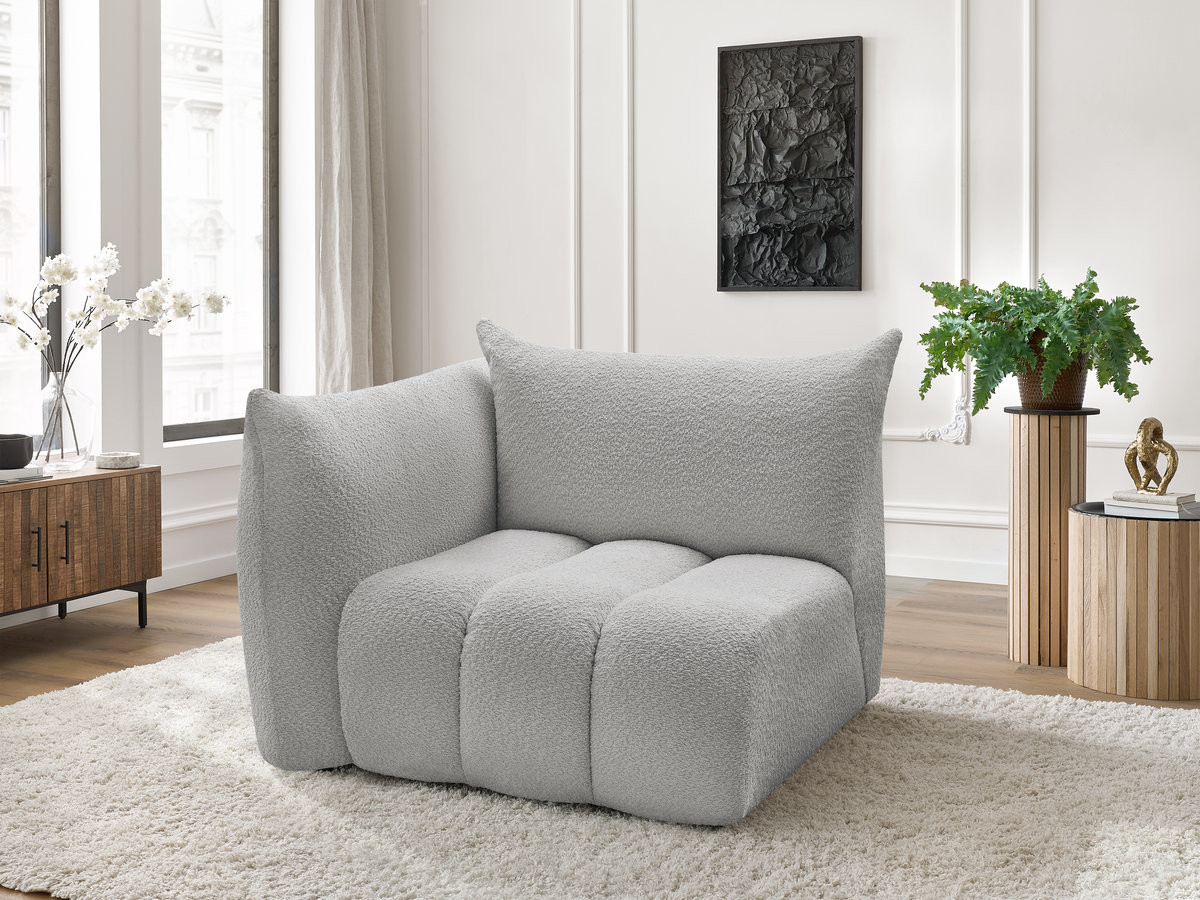 Chauffeuse 1 place avec accoudoir pour canapé modulable AZRA tissu bouclette gris clair angle droit BOBOCHIC 1 places