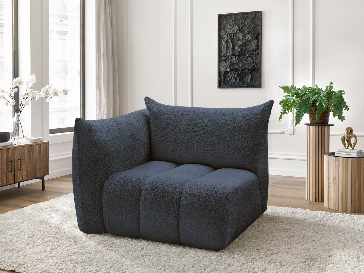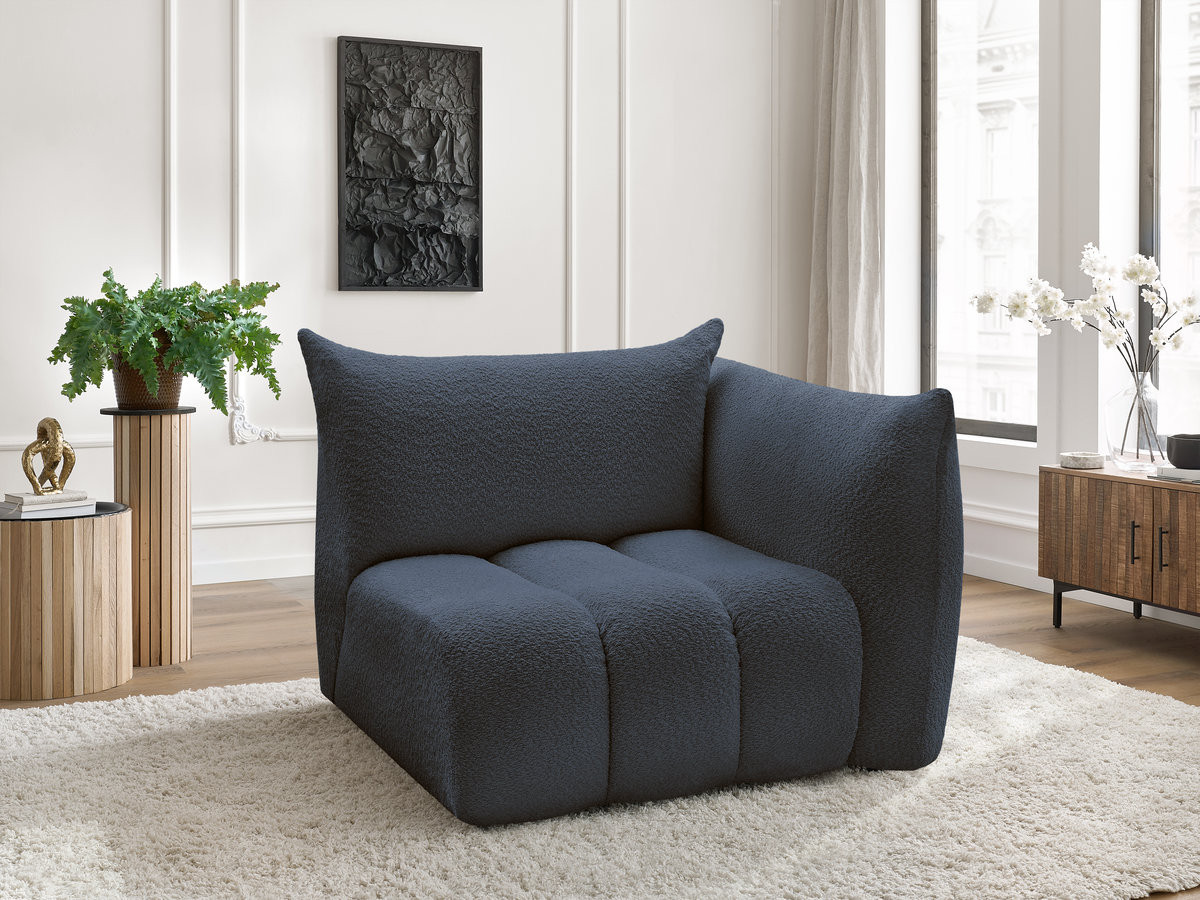Chauffeuse 1 place avec accoudoir pour canapé modulable AZRA tissu bouclette bleu foncé angle droit BOBOCHIC 1 places