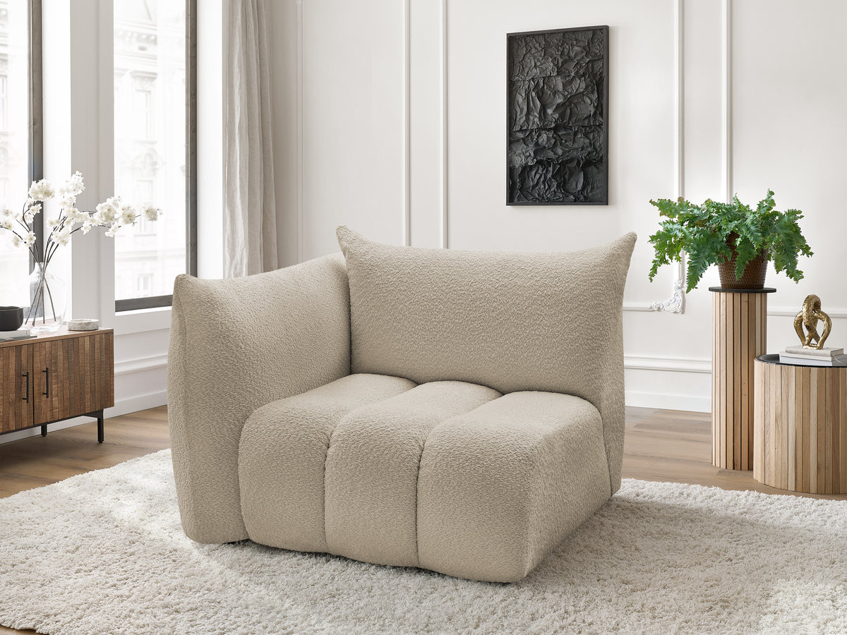 Chauffeuse 1 place avec accoudoir pour canapé modulable AZRA tissu bouclette beige angle droit BOBOCHIC 1 places