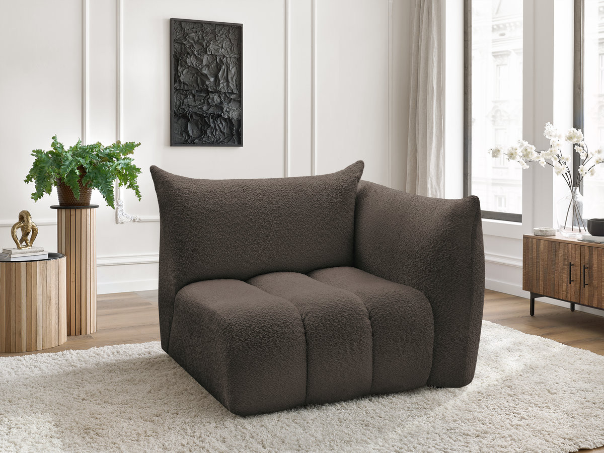 Chauffeuse 1 place avec accoudoir pour canapé modulable AZRA tissu bouclette marron angle droit BOBOCHIC 1 places
