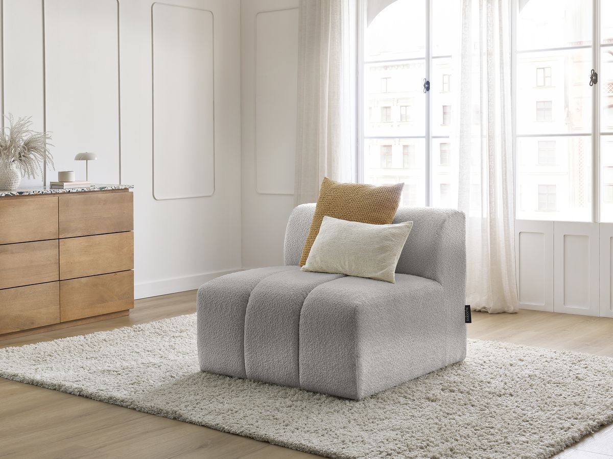 Chauffeuse 1 place sans accoudoir pour canapé modulable AZRA tissu bouclette gris clair BOBOCHIC 1 places
