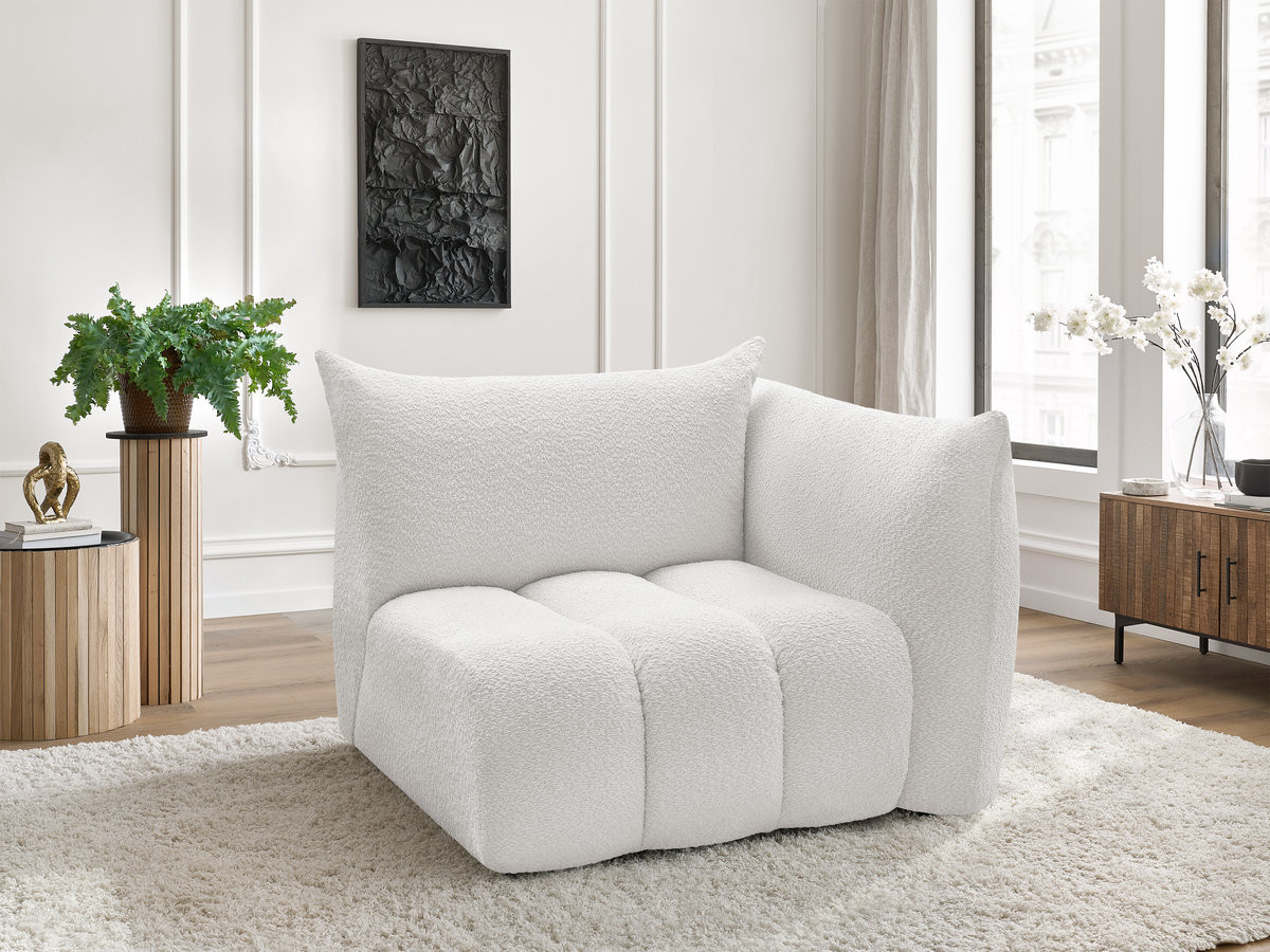 Chauffeuse 1 place avec accoudoir pour canapé modulable AZRA tissu bouclette blanc angle droit BOBOCHIC 1 places