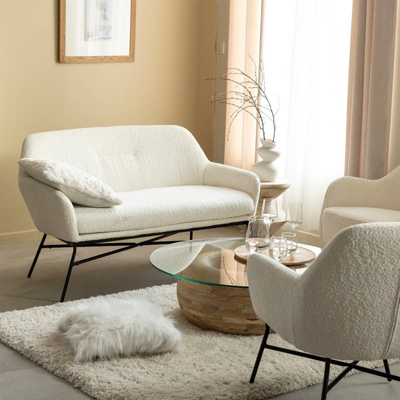 Vente Unique Canapé 2 places en tissu bouclette blanc OSSANA