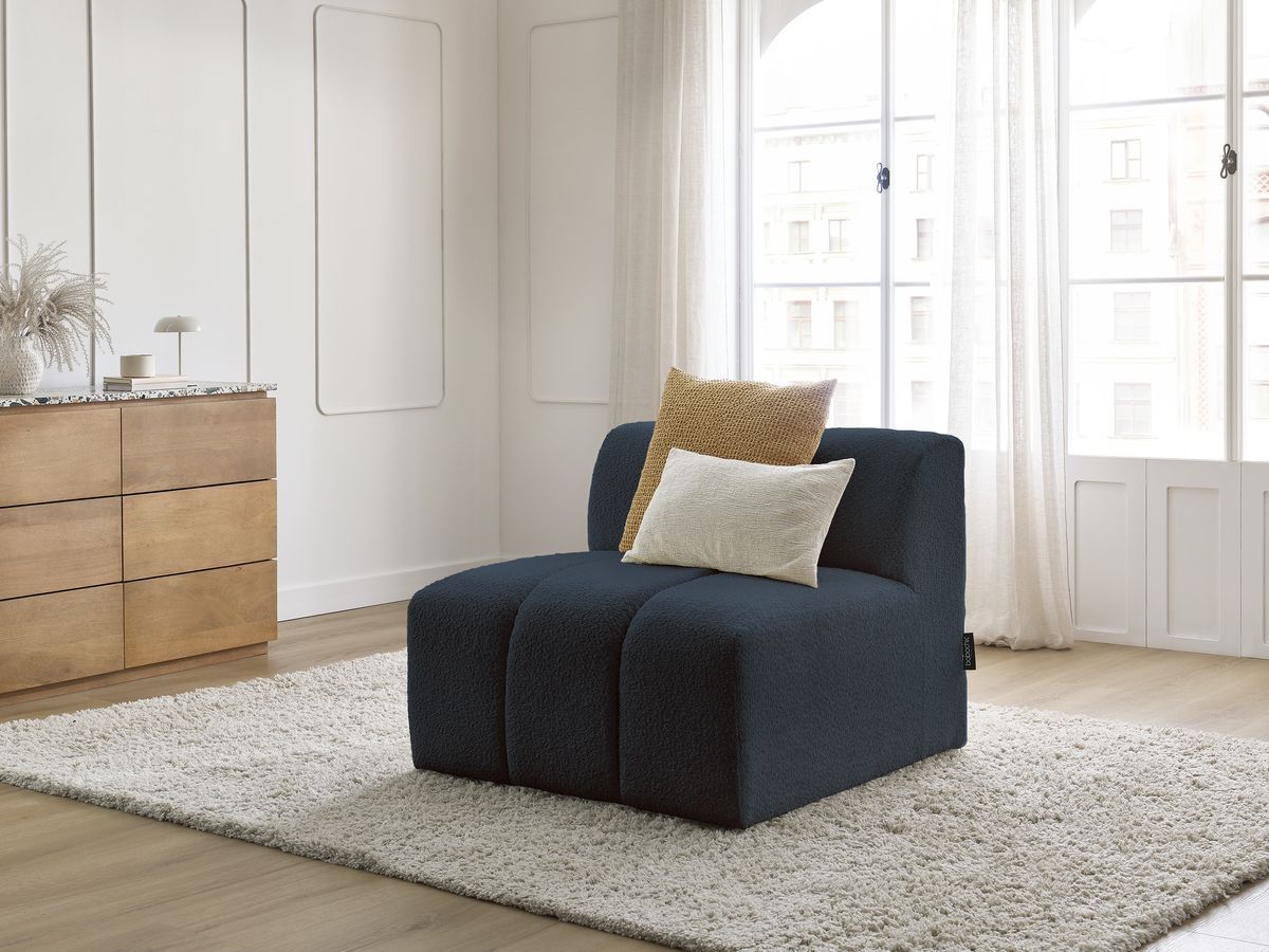 Chauffeuse 1 place sans accoudoir pour canapé modulable AZRA tissu bouclette bleu foncé BOBOCHIC 1 places