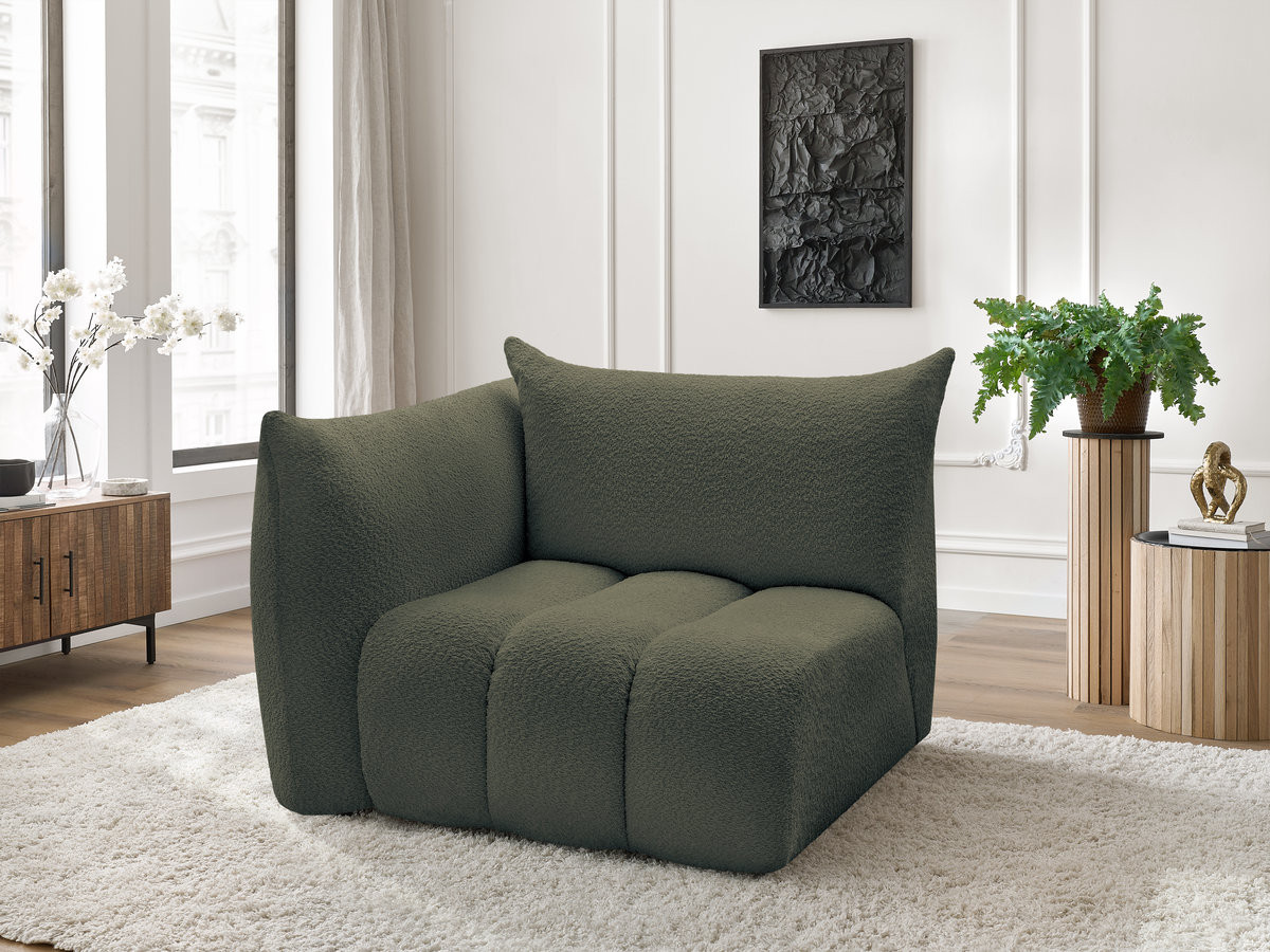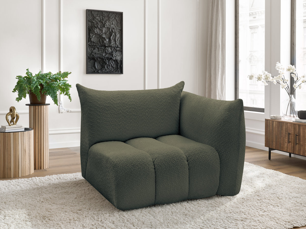 Chauffeuse 1 place avec accoudoir pour canapé modulable AZRA tissu bouclette vert angle droit BOBOCHIC 1 places