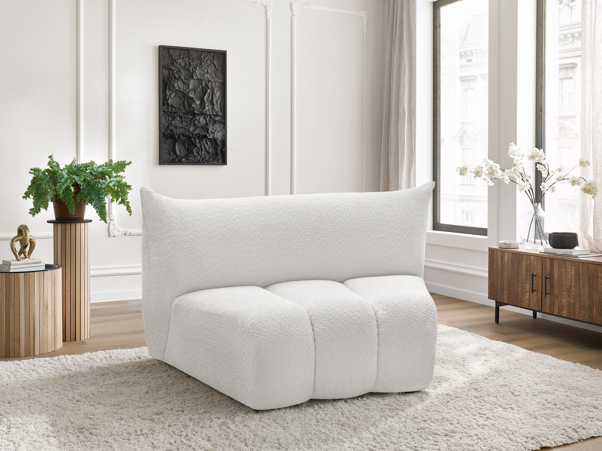 Chauffeuse 1 place incurvée pour canapé modulable AZRA tissu bouclette blanc BOBOCHIC 1 places