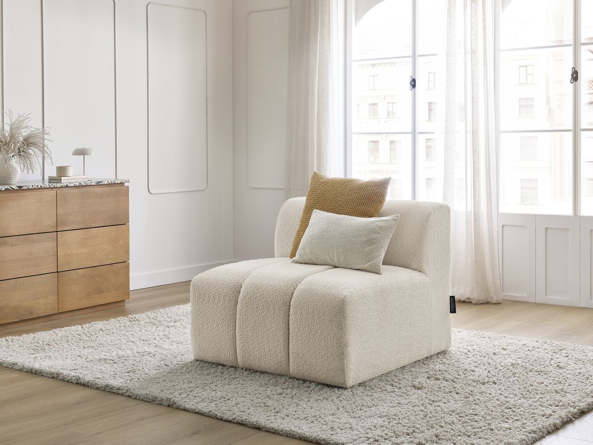 Chauffeuse 1 place sans accoudoir pour canapé modulable AZRA tissu bouclette blanc BOBOCHIC 1 places