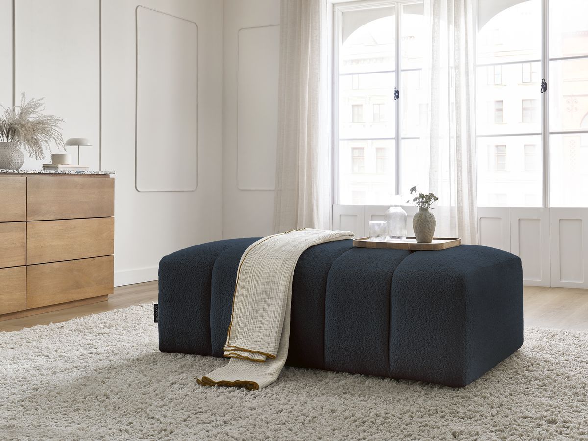 Pouf pour canapé modulable ANNECY tissu bouclette bleu foncé BOBOCHIC