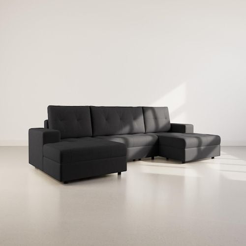 Bestmobilier Bella canapé d'angle panoramique XXL en U convertible avec coffre gauche