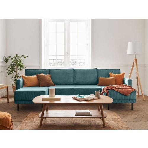 Charlie - canapé panoramique en u - 7 places - convertible avec coffre - en velours côtelé - bleu canard bleu canard Taille unique