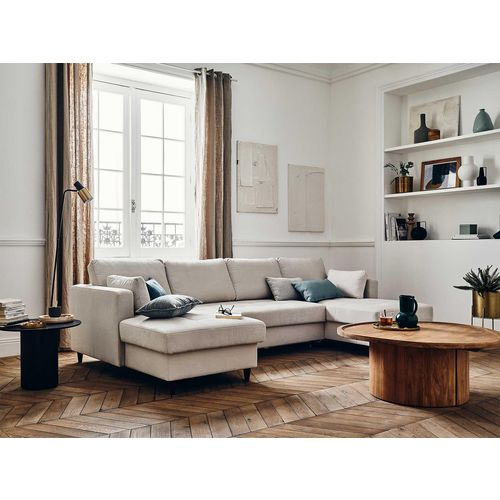 Gabriel - canapé panoramique en u 7 places convertible avec coffre en tissu texturé - beige beige Taille unique