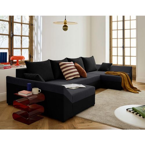 Mike - canapé panoramique en u - 7 places - convertible - avec coffre - en velours - noir / gris gris / noir Taille unique