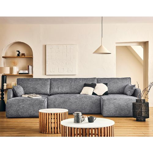 Pivoine - canapé panoramique en u - 7 places - convertible avec coffre - en velours texturé - gris gris Taille unique
