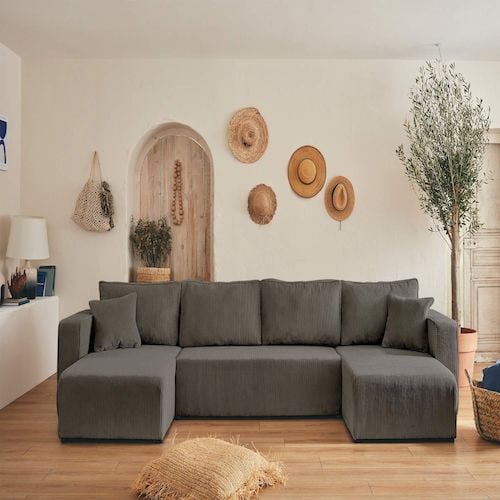 Stella - canapé panoramique en u - 7 places - en velours côtelé grosses côtes - gris gris Taille unique