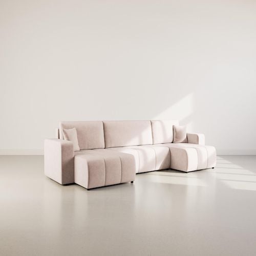 Miro - canapé panoramique en u 7 places - convertible avec coffre - en velours texturé - beige beige Taille unique