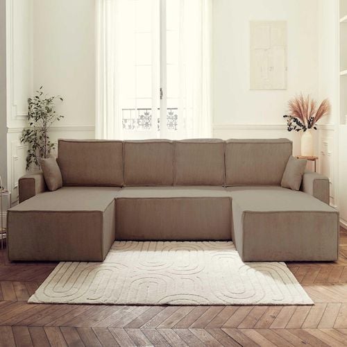 Albane - canapé panoramique en u - 7 places - convertible avec coffre - en velours côtelé - beige beige Taille unique