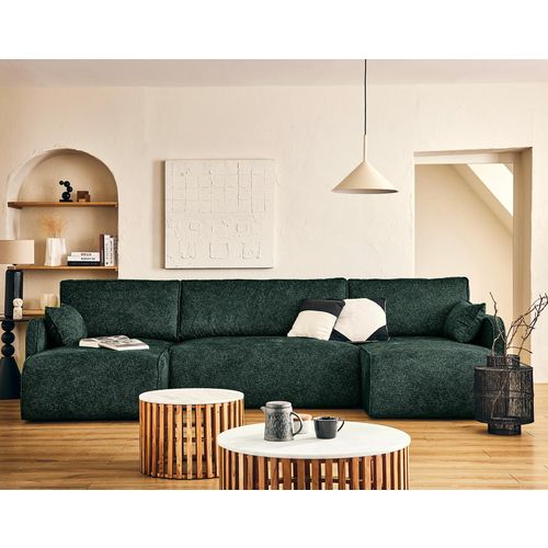Ray - canapé panoramique en u 7 places en tissu texturé - vert vert Taille unique