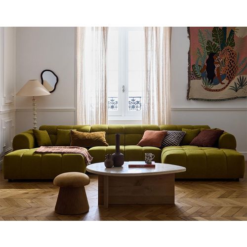 Miro - canapé panoramique en u 7 places - convertible avec coffre - en velours texturé - vert olive vert olive Taille unique
