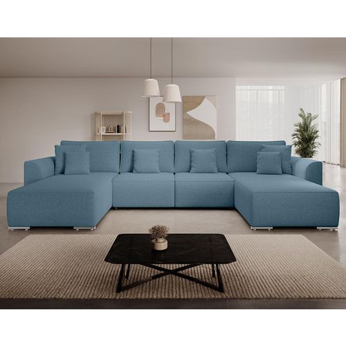 Gabriel - canapé panoramique en u 7 places convertible avec coffre en tissu texturé - bleu bleu Taille unique