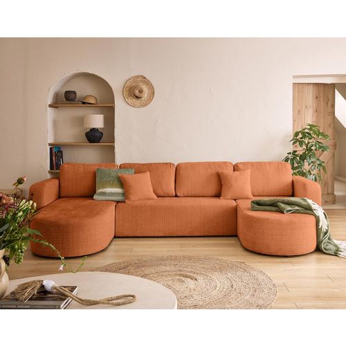 Charlie - canapé panoramique en u - 7 places - convertible avec coffre - en velours côtelé - terracotta terracotta Taille unique