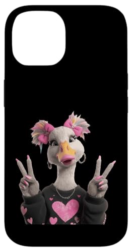 Dessin animé Canard Paix Mignon Animal Amant Graphique ludique Vibrant Coque pour iPhone 14 Pro
