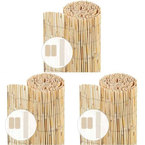 vounot® Canisse en Roseau Naturel 100x600cm Brise Vue en Rouleaux avec Attaches de Fixation Protection Contre Regards Clôture Extérieure Décorative pour Jardin Terrasse et Balcon (Lot de 3)