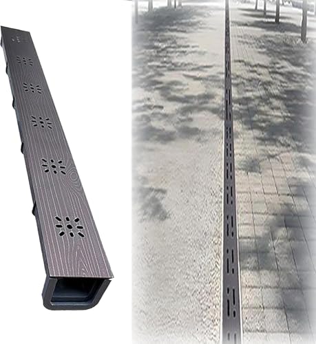 AVLLSO Caniveau Exterieur Kit de Drainage à Canal Peu Profond pour terrasse pavée, dérivateur de gouttière avec grilles Amovibles(Style a,19.7X3.9X1.6in)
