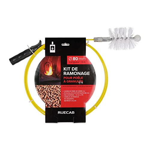 RUECAB - Kit de ramonage pour poêle à pellets Ø80mm 3m, flexible,canne fibre de verre avec filetage M12 X 1,75MM - Ecouvillons poils synthétiques 80mm - Spécial poêles granulés