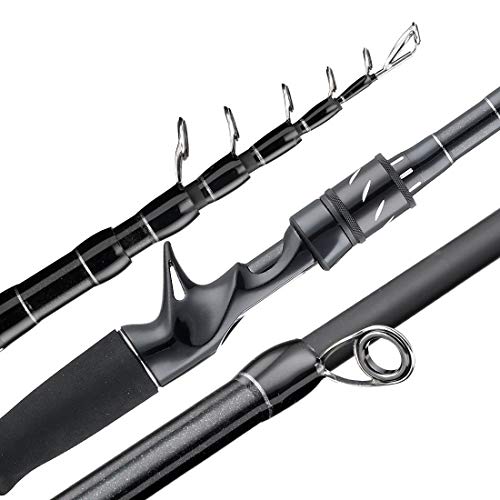 Canne A Peche Mer, Canne A Peche Au Coup Canne à pêche rotative ultralégère et Portable, Accessoire de Voyage en mer, 1.5M, .8M, 2.1M, .4M, .7M, 3.0M(Black,2.4 m)