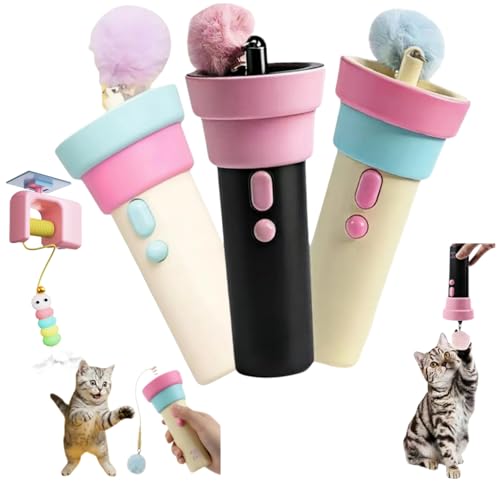 Générique Jouet Chat, Canne A Peche pour Chat avec Corde Telescopique, Jouet Interactif Electrique Lanceur De Balles pour Chats (A)